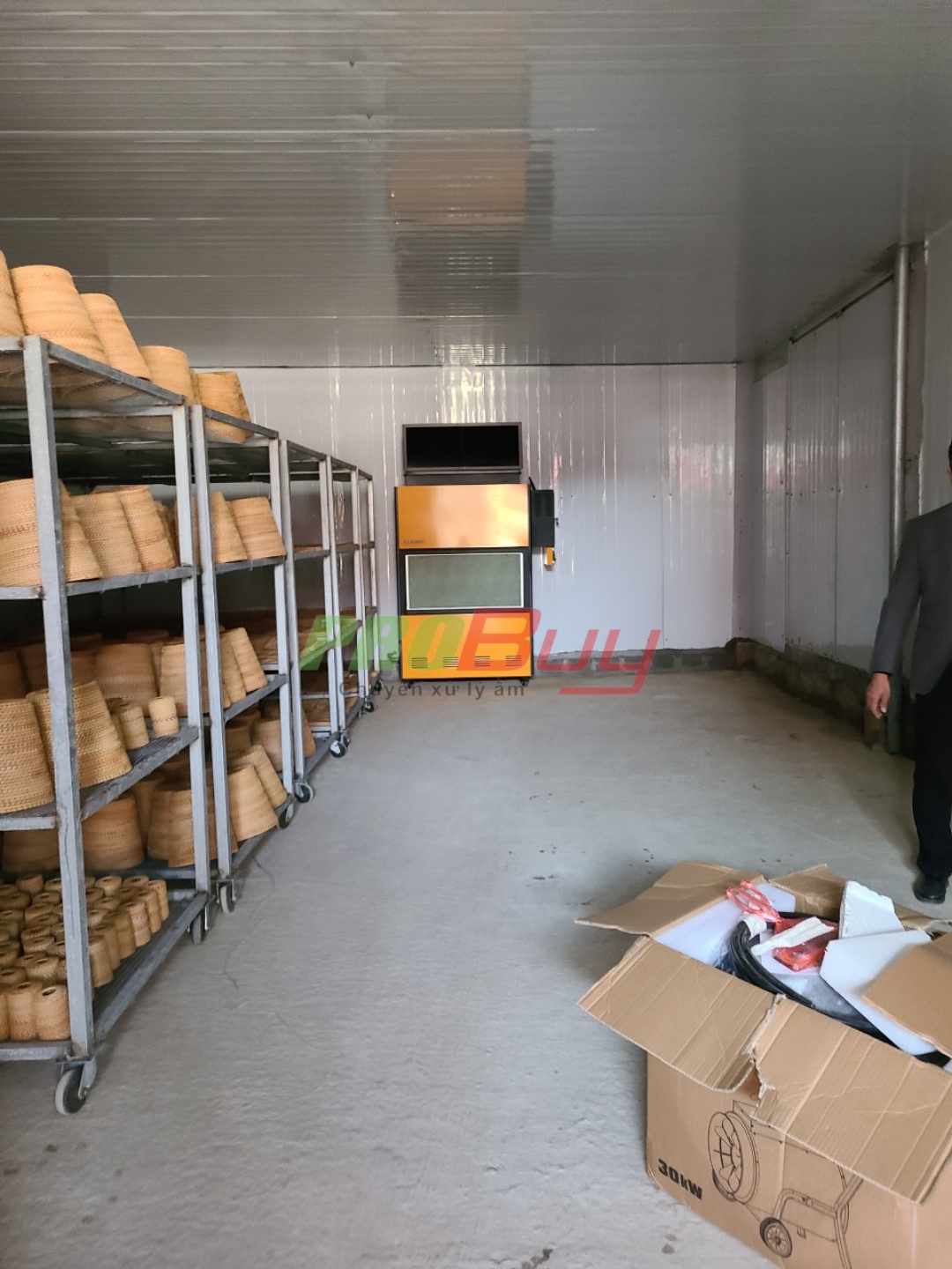 HÌnh ảnh thực tế lắp đặt máy hút ẩm công nghiệp Harison HD- 192PS tại kho linh kiện điện tử giúp giảm độ ẩm từ 90%xuống còn 60% giúp bảo vệ hàng hoá hiệu quả