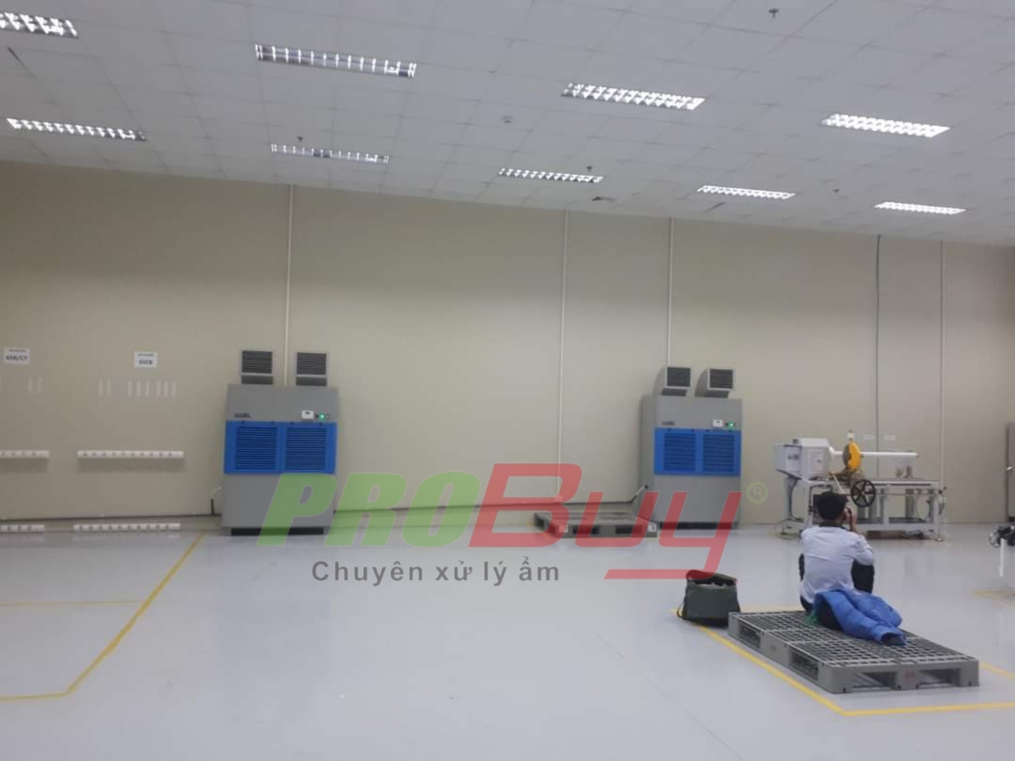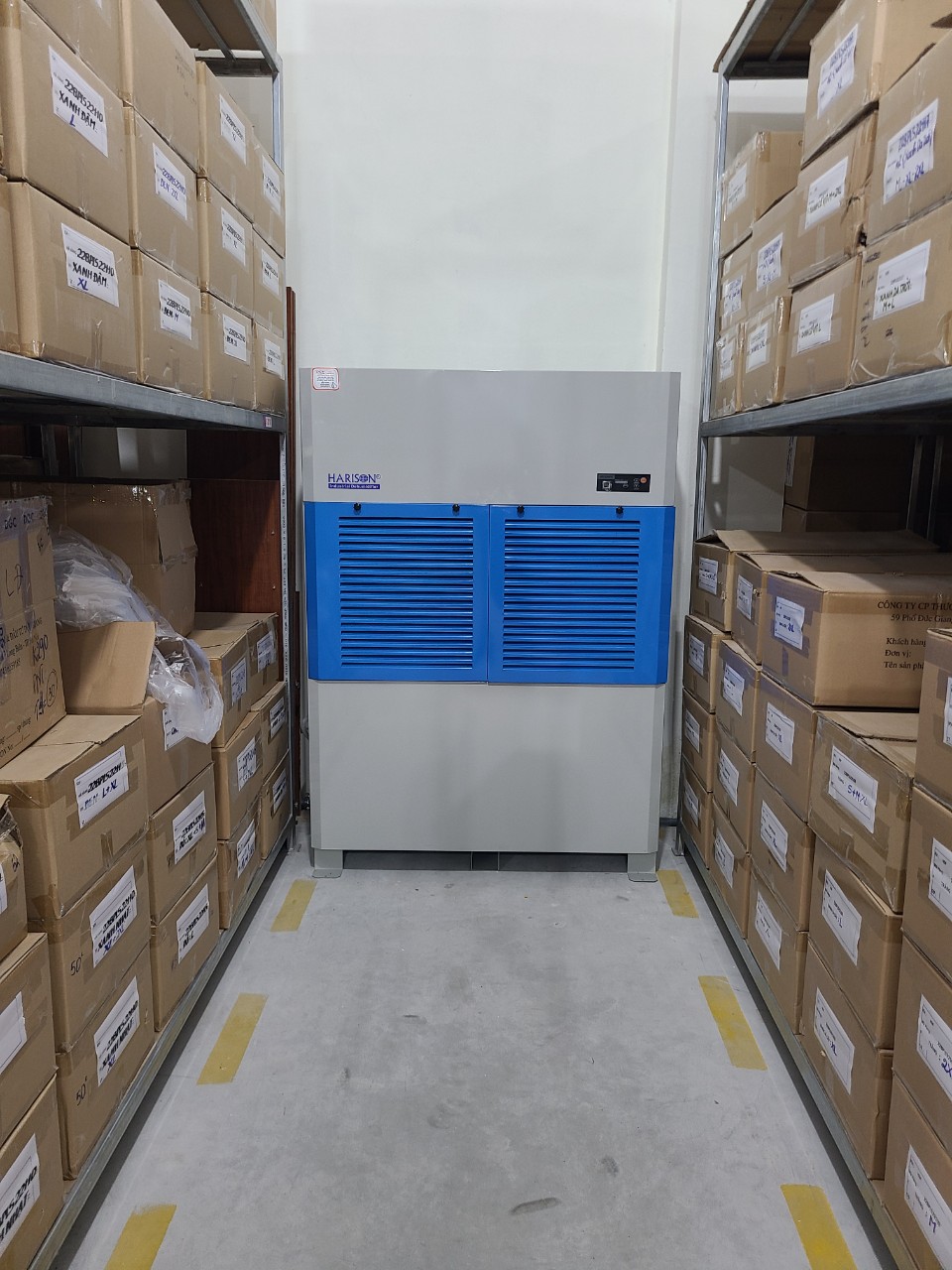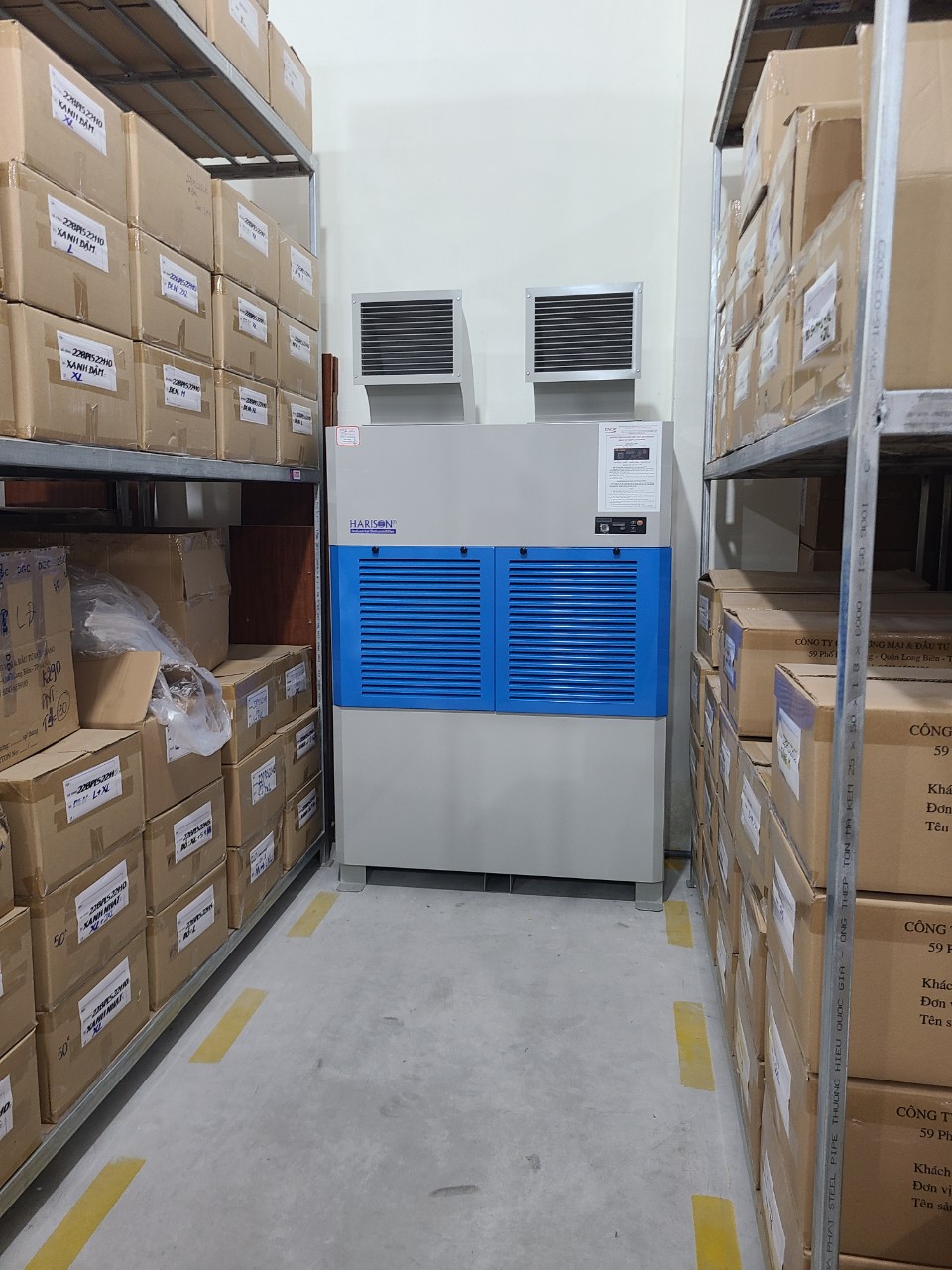 ( hình ảnh thưc tế lắp đặt máy hút ẩm Harison HD 504PS tại nhà máy giúp giảm độ ẩm từ 95%-xuống còn 65% - Độ ẩm an toàn, lý tưởng cho kho bãi..)
