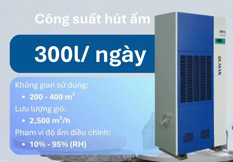 - Công suất hút ẩm vượt trội lên đến 300 lít/ngày: Khả năng hút ẩm cực mạnh giúp Olmas OS-300 dễ dàng kiểm soát độ ẩm trong các không gian có diện tích từ 300 đến 600 m², đảm bảo môi trường luôn khô ráo.